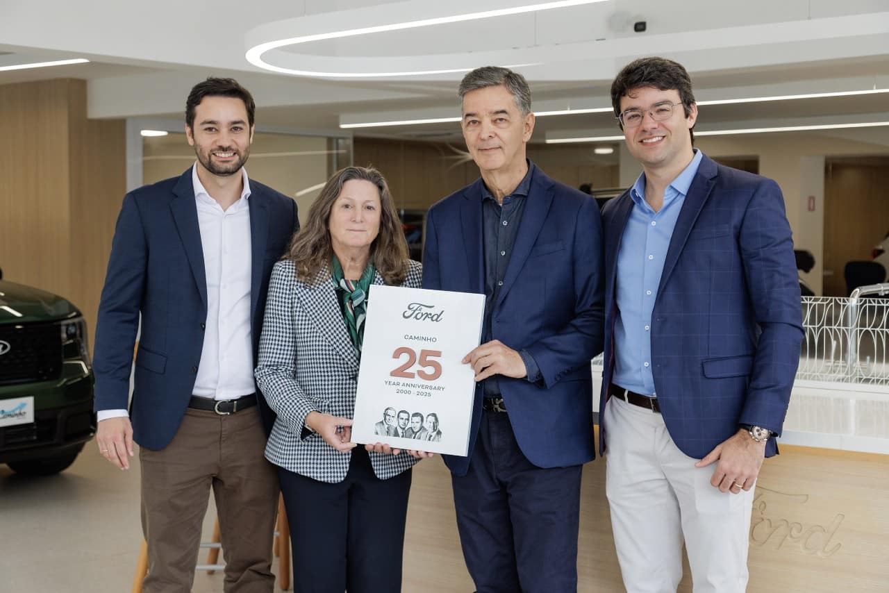 Elena Ford, líder global da área de Dealer Engagement da Ford, visitou o Brasil para revisar o plano de negócios na região e participar de encontros com lideranças da rede de concessionárias. Ela realizou também uma visita à Ford Caminho em Campinas, a primeira loja a adotar o Signature 2.0 no continente, ocasião em que entregou uma placa comemorativa aos 25 anos do Grupo Caminho.